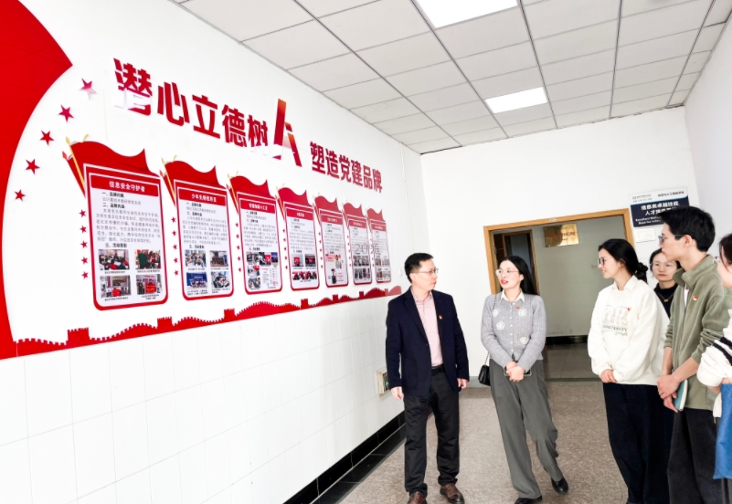 園區(qū)黨員代表在周主任和王院長的陪同下參觀了學校校史館,深入了解了商貿學院的創(chuàng)立背景、發(fā)展歷程、教育教學成果以及社會影響力等方面的內容,校史館充分展現(xiàn)了學校的辦學理念、悠久的歷史積淀和豐富的文化底蘊。隨后參觀了信息與人工智能學院教學樓和教學設施,了解了學院的榮譽歷程、師資團隊以及黨支部多種多樣的黨建活動。