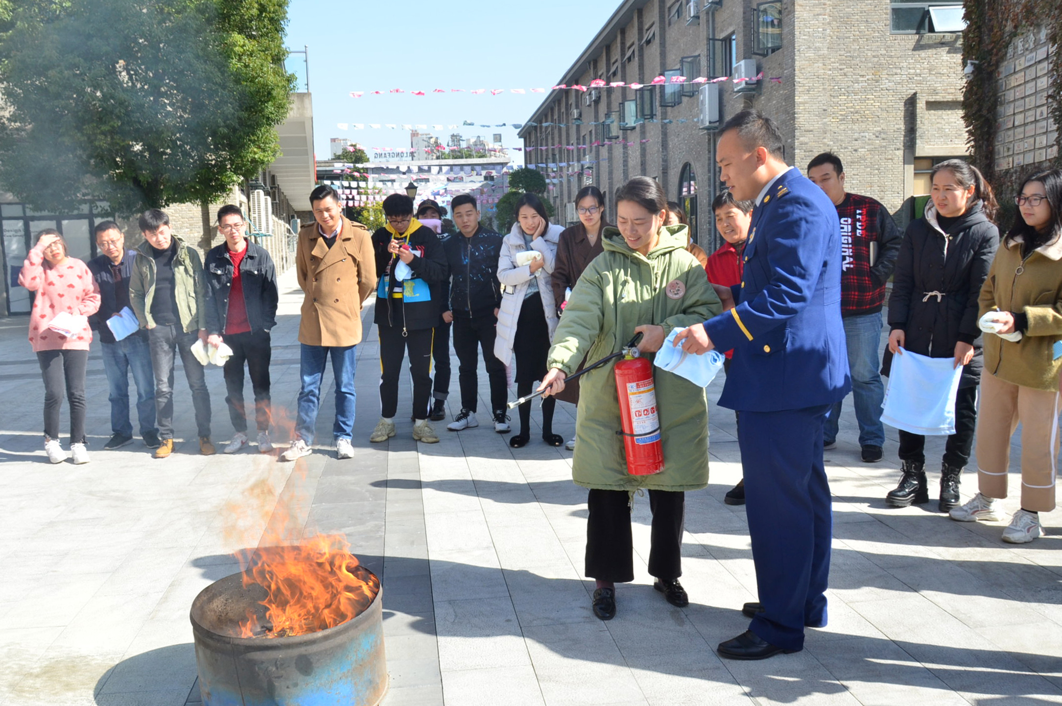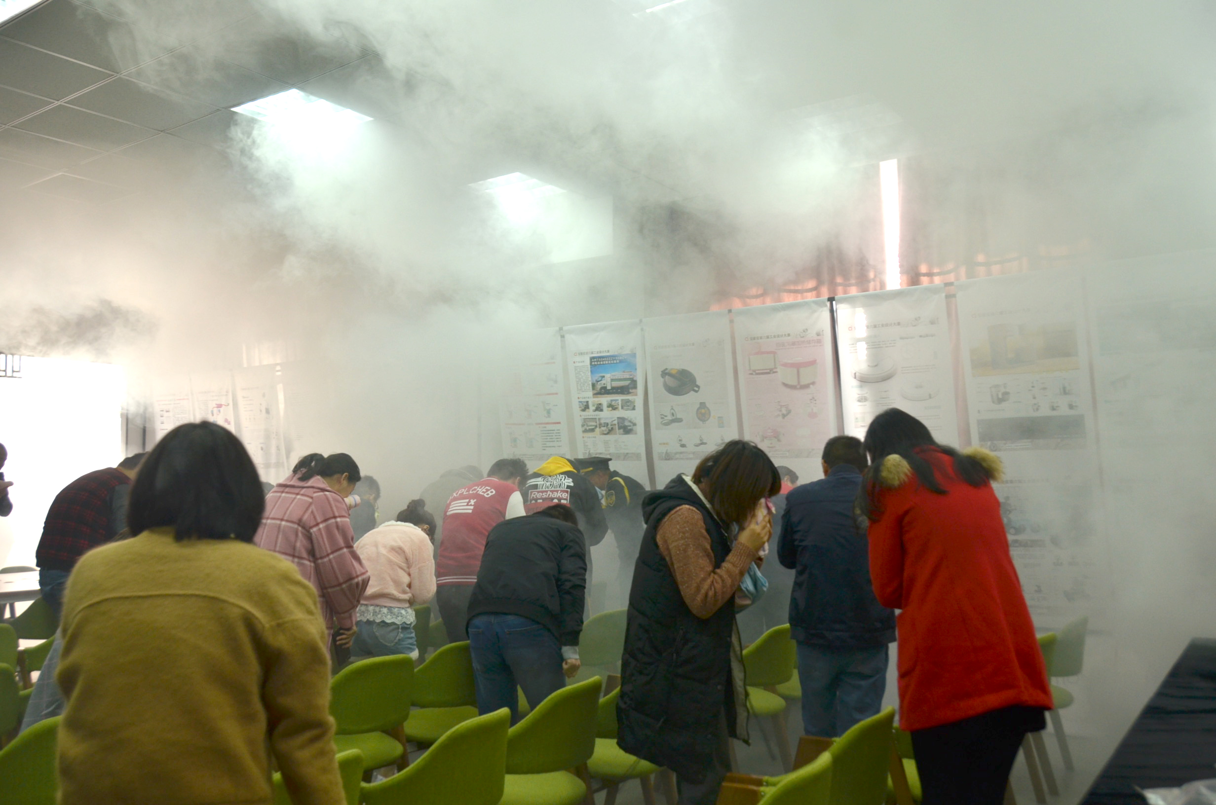 隨后,在室內(nèi)模擬了火災(zāi)發(fā)生時的逃生演練,使全體人員了解和掌握如何識別危險、如何采取必要的應(yīng)急措施、如何疏散人群等基本操作,一旦發(fā)生事故,懂得應(yīng)該做什么、能夠做什么、如何去做等。在演練開始時,白教官為員工們講解及示范如何正確使用滅火器,大家在理解了使用方法后,克服內(nèi)心恐懼后,對油桶火進行撲滅,體驗了滅火過程。