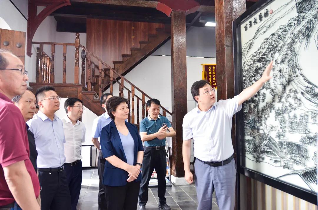 ? 調(diào)研組一行首先來到園區(qū)益新面粉大樓,園區(qū)功能性黨委書記、總經(jīng)理卞國琛在鐵畫作品《百年大礱坊》前向調(diào)研組介紹百年前蕪湖青弋江兩岸繁榮興盛的景象,講解益新面粉廠131年的風(fēng)雨歷程,以及大樓如何整修與保護(hù)。調(diào)研組在大樓四樓駐足觀賞原華中師范大學(xué)校長章開沅老先生的題詞,上面寫道:“飲水思源,日新又新”“百年益新面粉廠,日新礱坊科技園”。